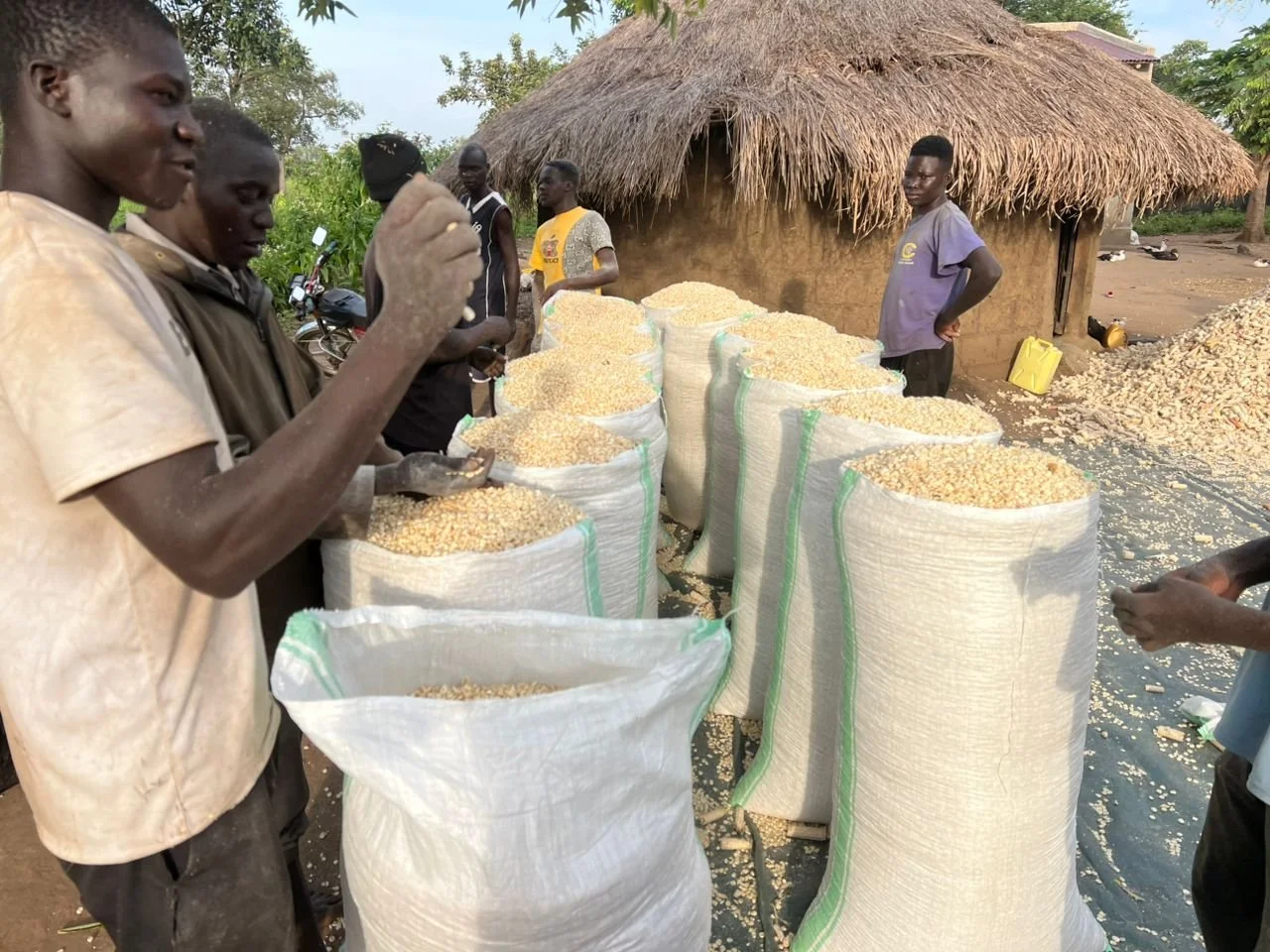 UPDATE: All 100 acres are being cleared. First harvesting of corn, tomatoes and peppers complete. We harvested 2000 kg of corn and are currently working to fulfill contracts with a Gulu factory to provide them with corn and sunflower in return for funds to sustain the villagers and the village project.